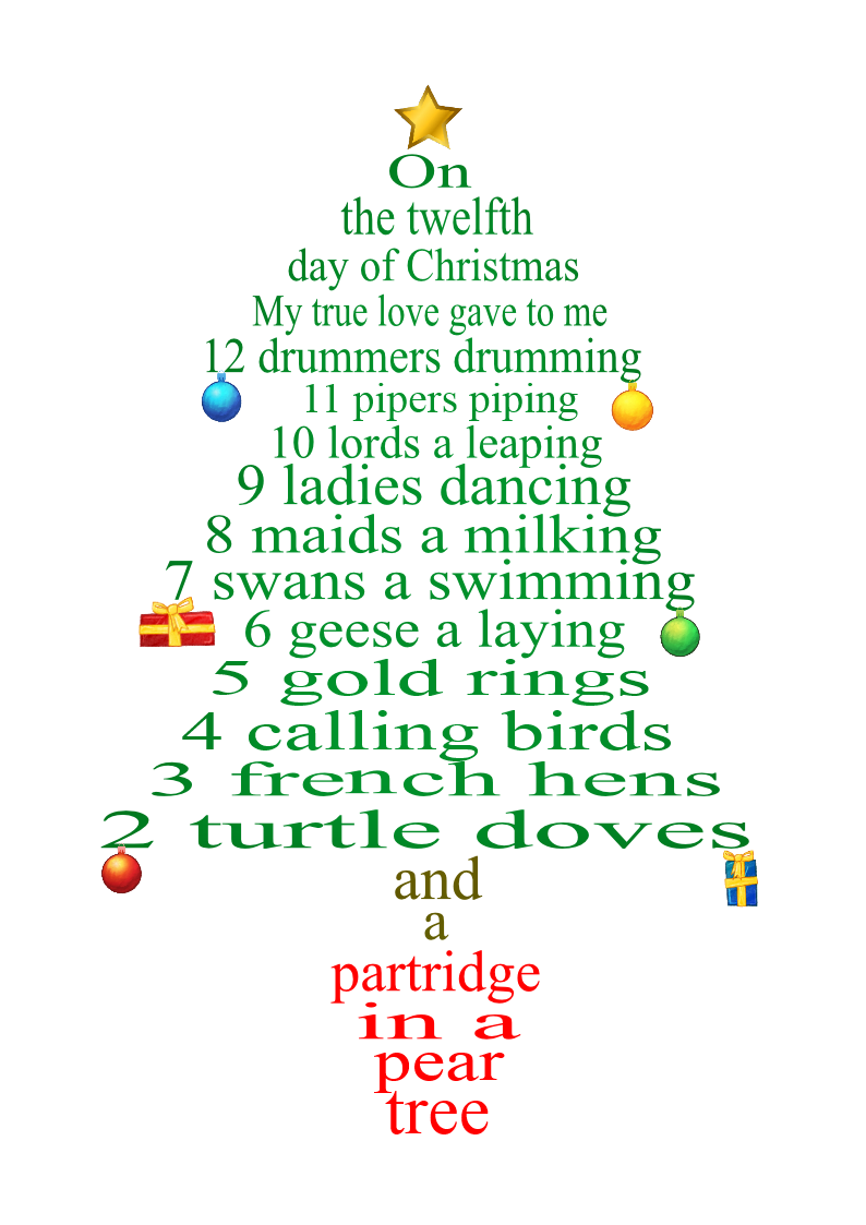 Beautiful 12 Days Of Christmas Lyrics Printable Free Download