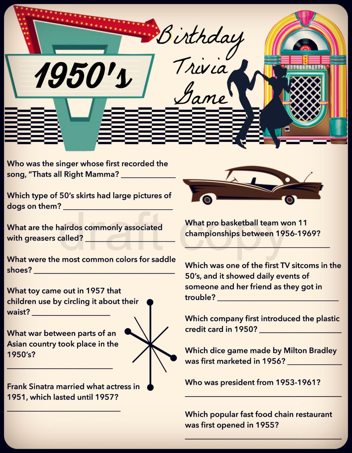 50s Trivia 1950s Trivia Game Printable 50s Trivia 50 s Party Trivia Game Printable Trivia Decades Trivia 50s Theme Trivia Etsy