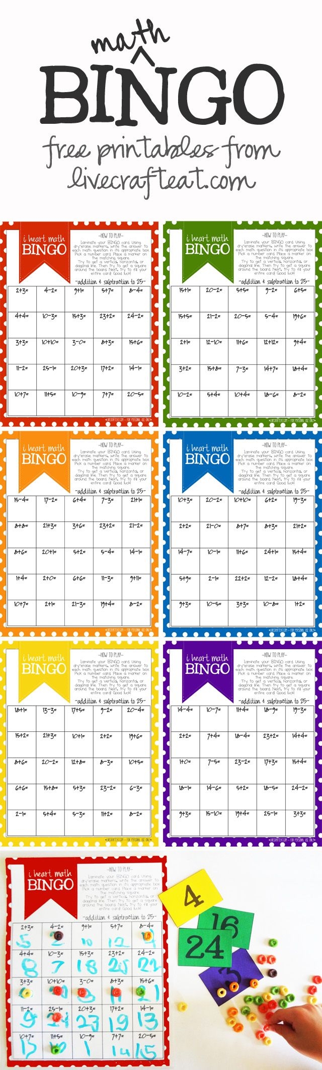Math Bingo Printable For Kids Free Live Craft Eat
