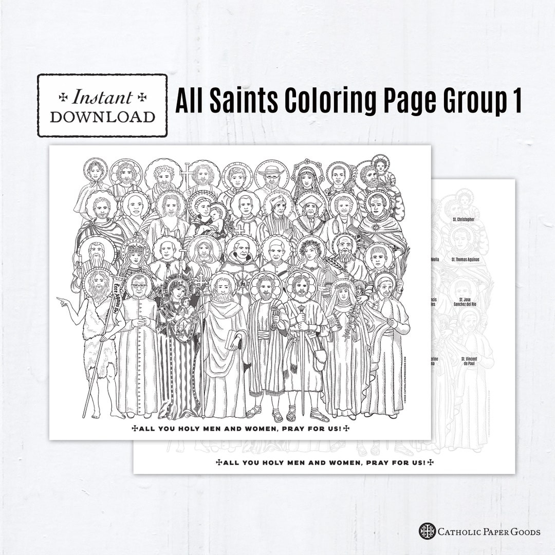 All Saints Group 1 Catholic Coloring Pages Catholic Prayers Printable Coloring Page With Guide 35 Saints Digital PDF All Saints Day Etsy