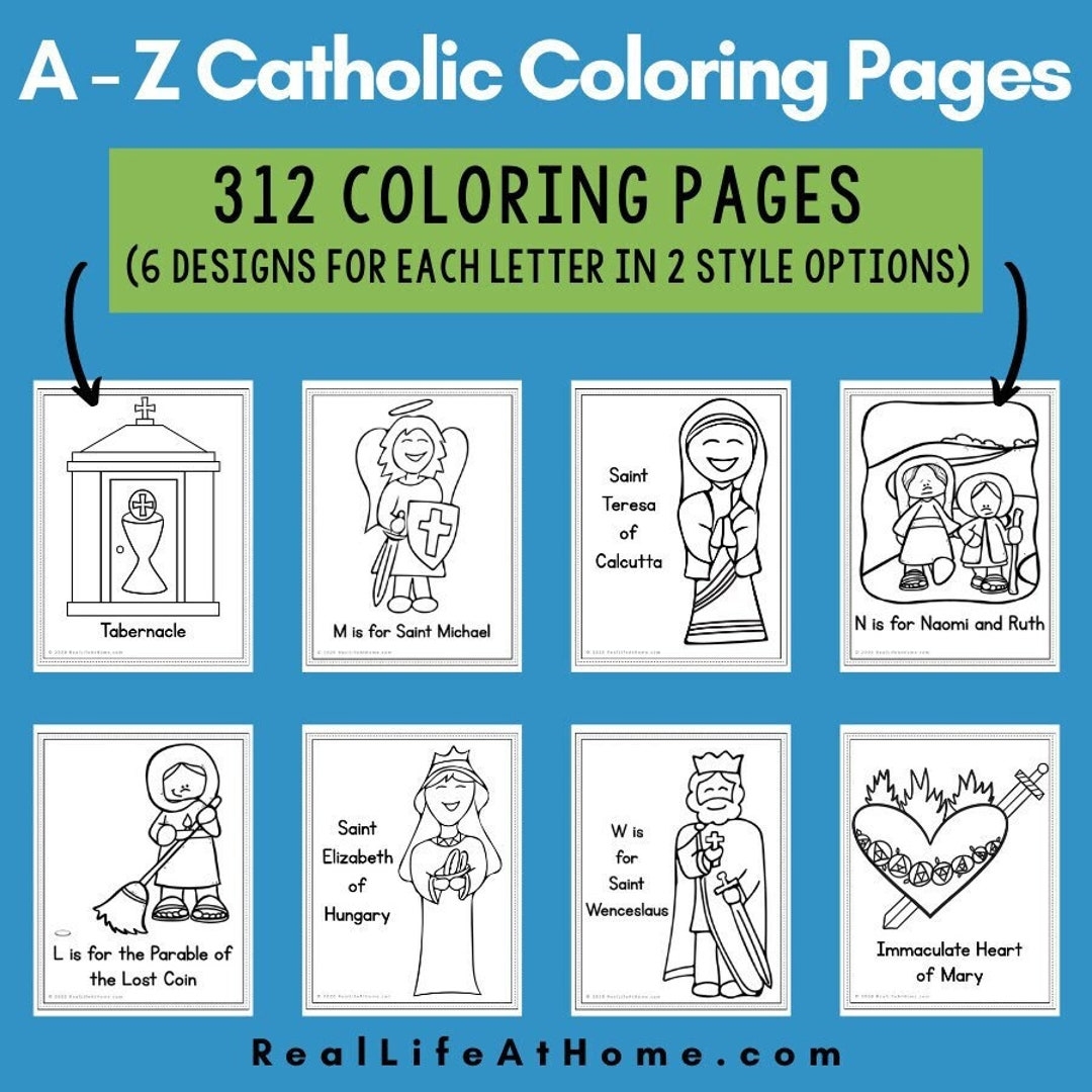 Catholic ABC Coloring Bundle Instant Download Printable Coloring Pages For Catholic Kids Catholic Homeschool Catholic Teacher Etsy