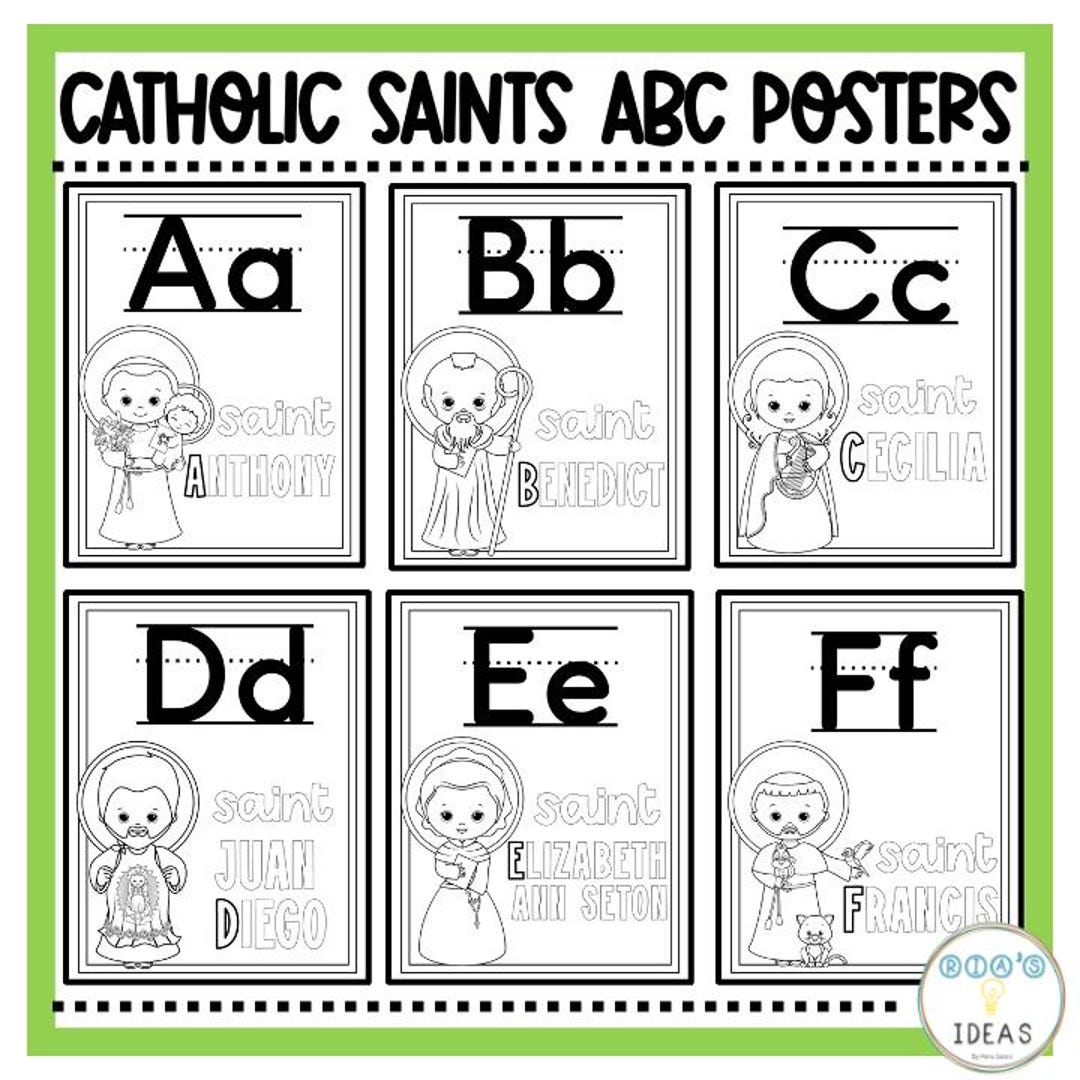 Catholic Saint ABC Coloring Posters Saint Coloring Pages Etsy