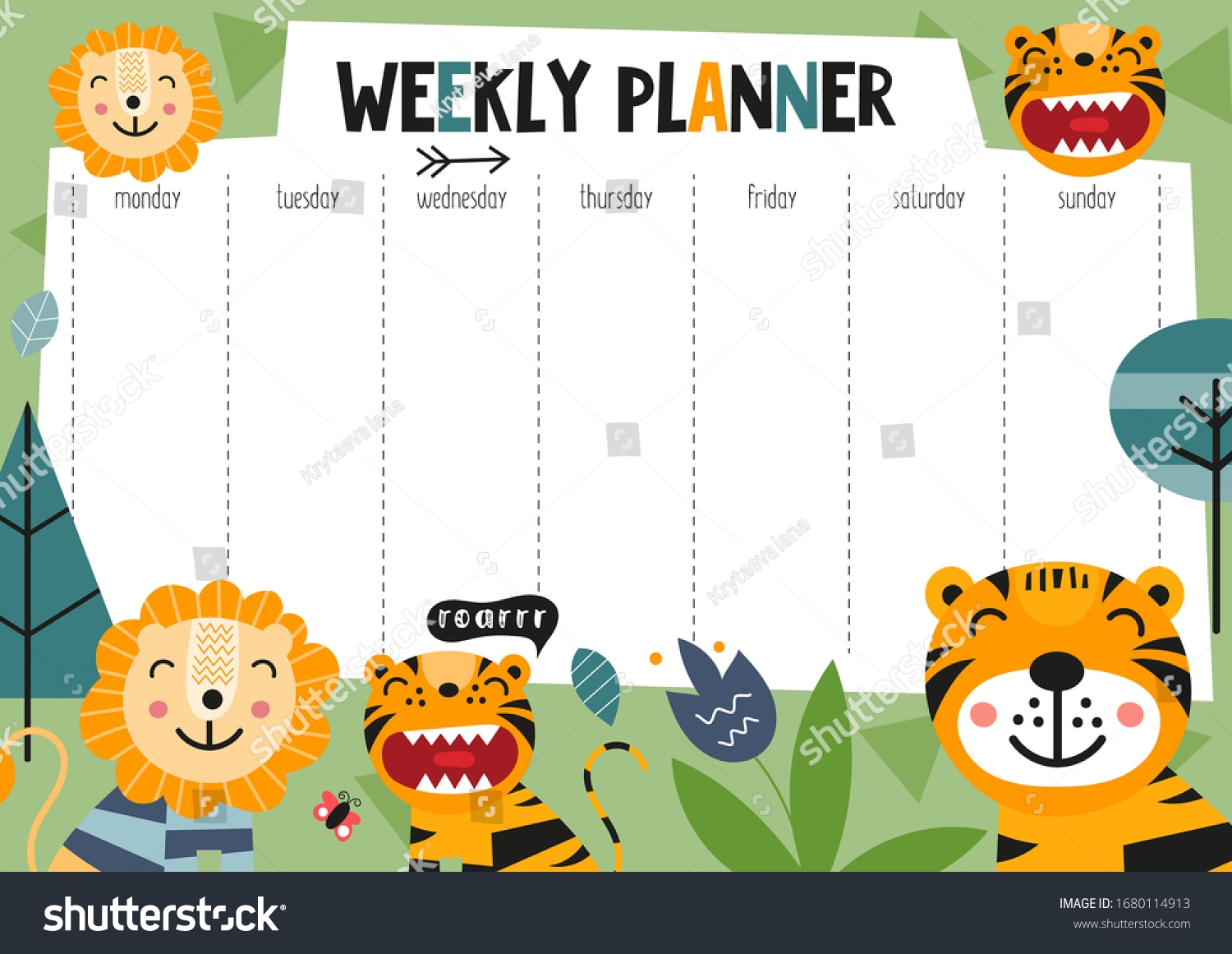 Weekly Planner Funny Jungle Animals Doodle Stock Vector Royalty Free 1680114913 Shutterstock