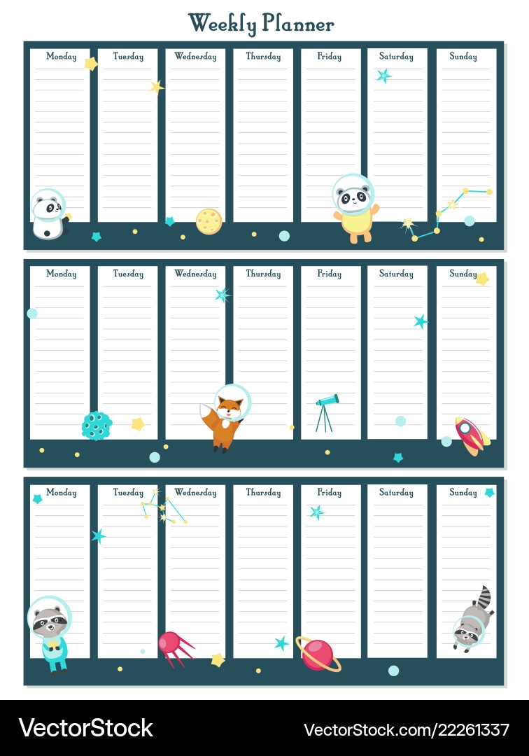 Weekly Planner Template With Space Animals Vector Image