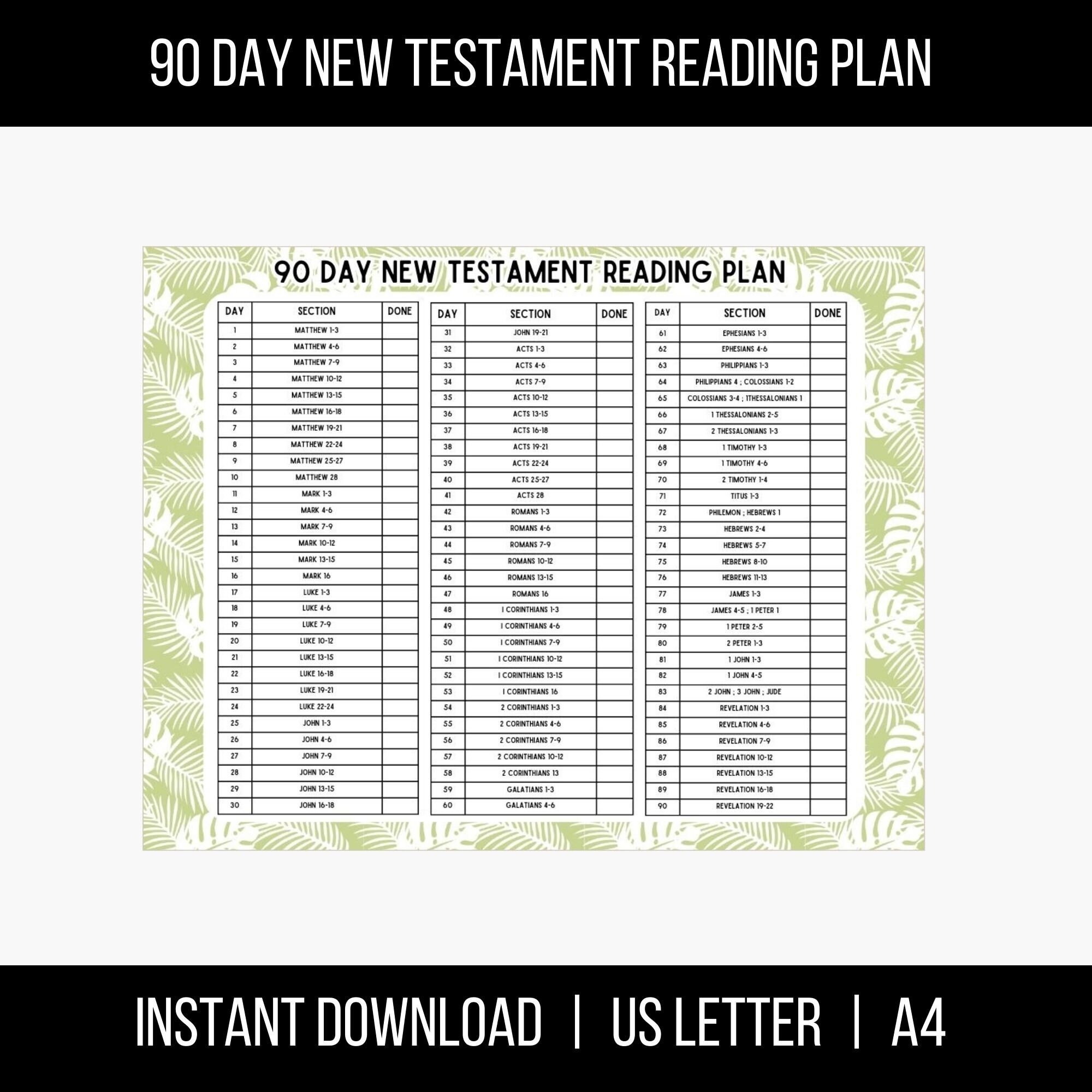 90 Day New Testament Reading Plan Bible Plan Printable Christian Printables Bible Bookmarks Bible Tracker Printable Faith Digital Etsy