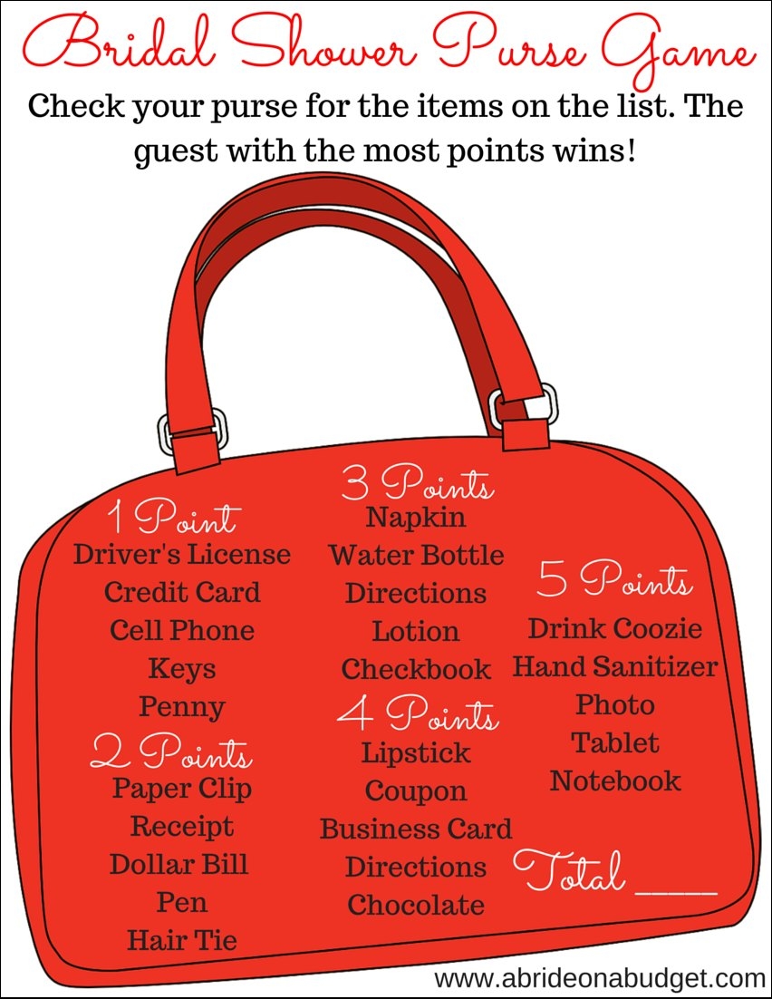 A Bride On A Budget Bridal Shower What s In Your Purse Game plus A Free Printable