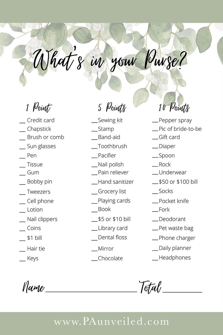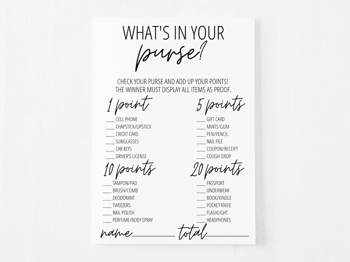 Whether you’re hosting a small gathering or a large party, the Bridal Shower Purse Game is a versatile option that can be customized to fit your event. You can even add your own twist by including bonus items or setting time limits for extra excitement.