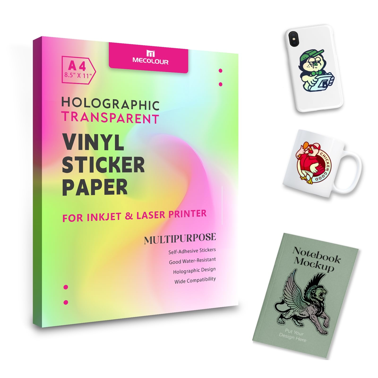Amazon Printable Vinyl Sticker Paper DIY Decal Paper For Inkjet Laser Printer Self Adhesive Sheets Holographic Transparent 10 Sheets A4 8 5X11 Office Products