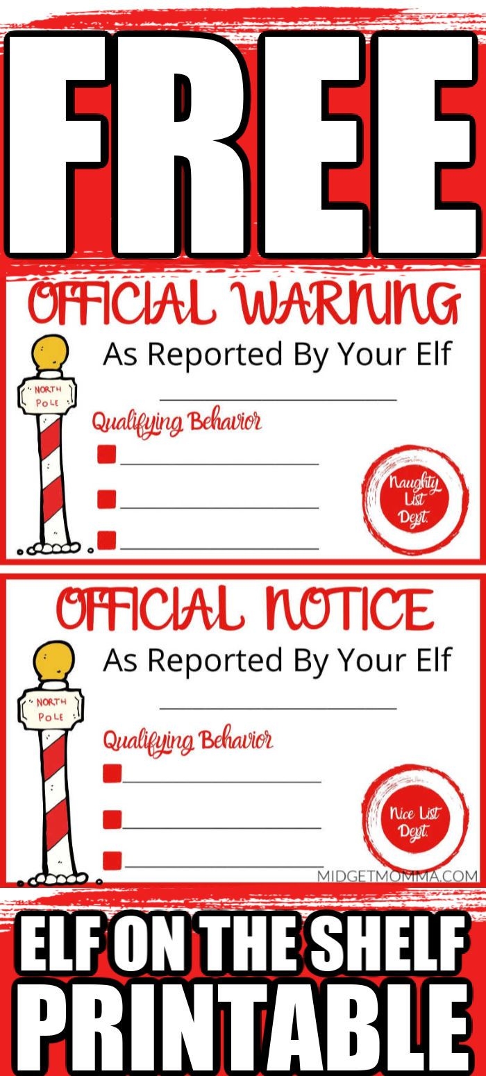 One way to add an extra element of fun to your Elf on the Shelf experience is by using a naughty warning printable. This printable can be a great tool to remind your kids to stay on their best behavior so they don’t end up on the naughty list!