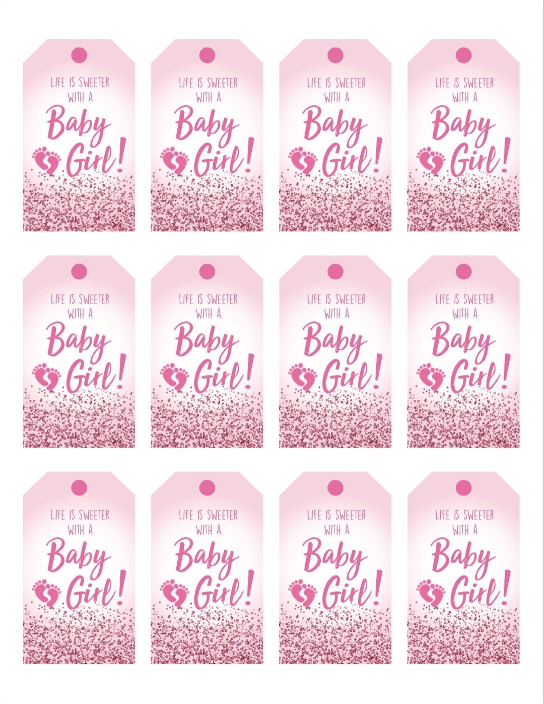 Life Is Sweeter With A Baby Girl Gift Tags downloadable Sheet Of 12 Etsy