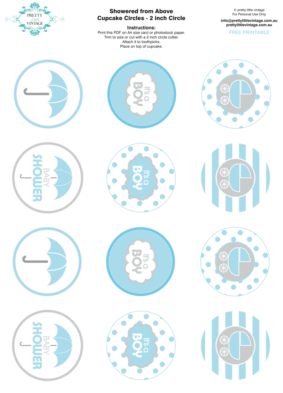 Simply download the templates, print them out on cardstock or adhesive paper, and cut them out with scissors or a circle punch. Then, attach them to toothpicks or lollipop sticks, and insert them into your cupcakes for an instant upgrade.