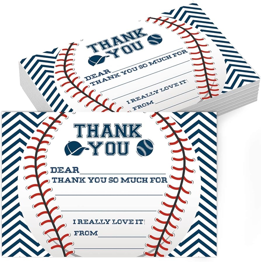 Amazon TENTADO Baseball Thank You Cards Baseball Thank You Cards With Envelopes Kids Fill In The Blank Thank You Cards 20 Count With Envelopes 4 X 6 Office Products