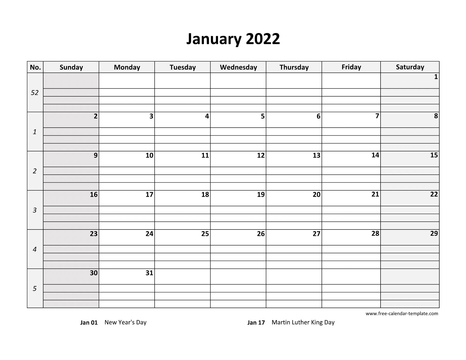 Monthly 2022 Calendar Free Printable With Grid Lines Designed horizontal Free calendar template