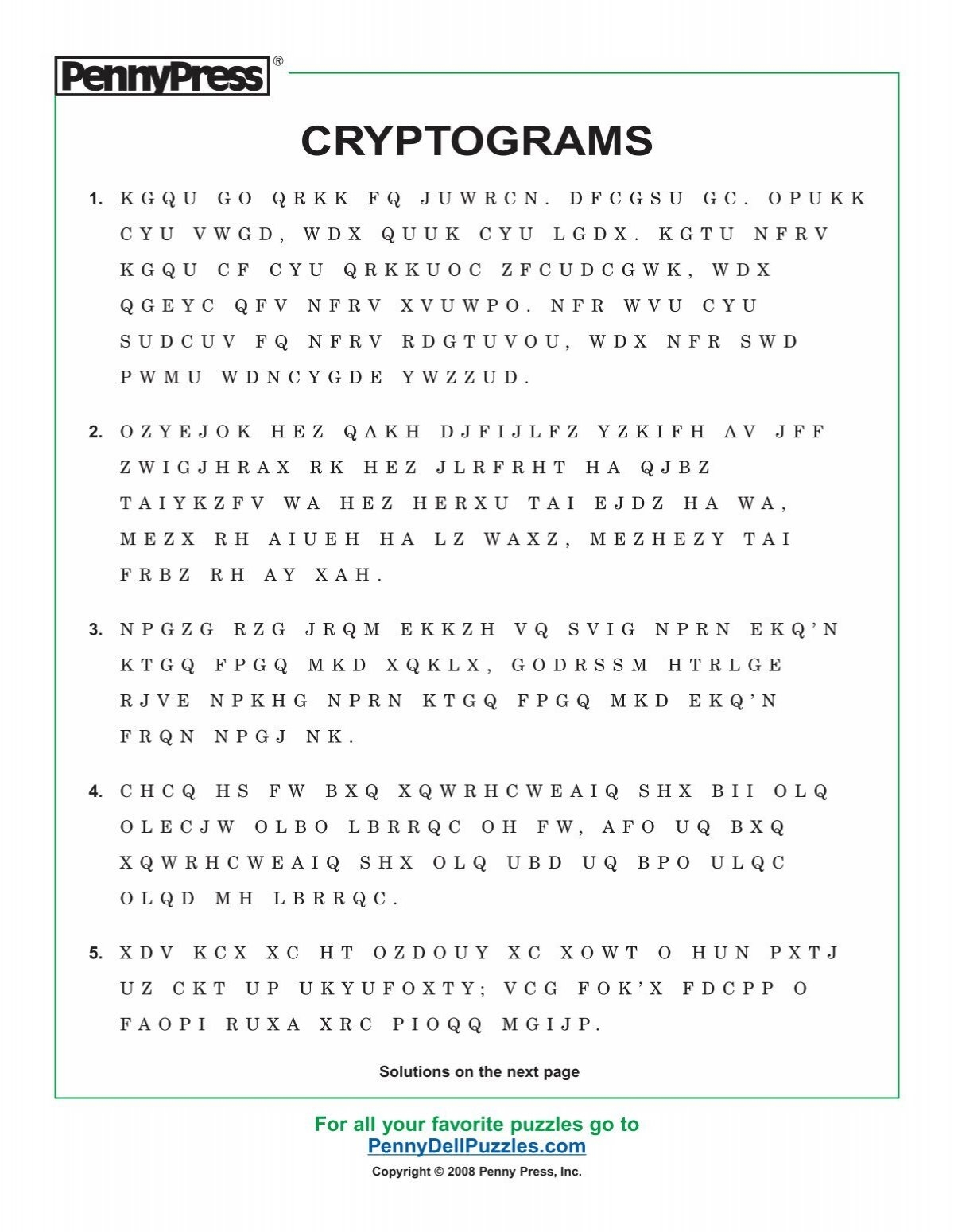 Free Printable Cryptograms With Answers