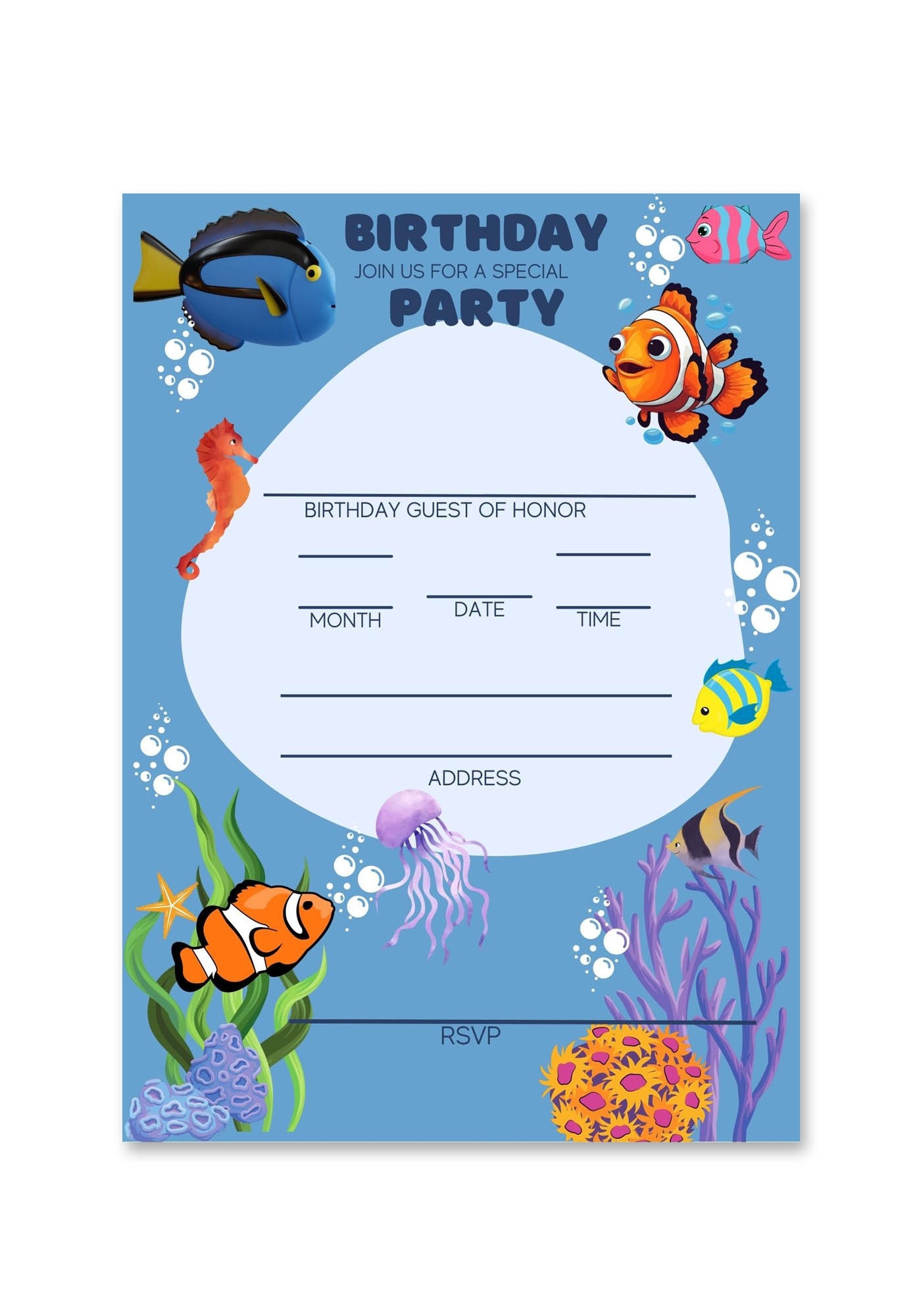 So why spend money on expensive invitations when you can get high-quality, adorable designs for free? Save your budget for other party essentials and let our Finding Nemo invitations take care of setting the right mood for your celebration. Your little one will thank you for throwing the best party ever!
