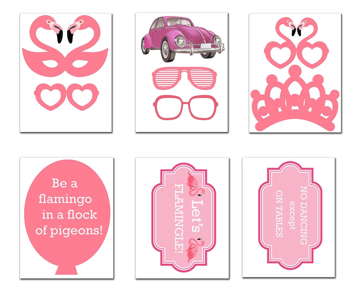 Printable Flamingo Party Props 17 Coral Pink Flamingo Props DIY Props Instant Download Flamingle Party Etsy