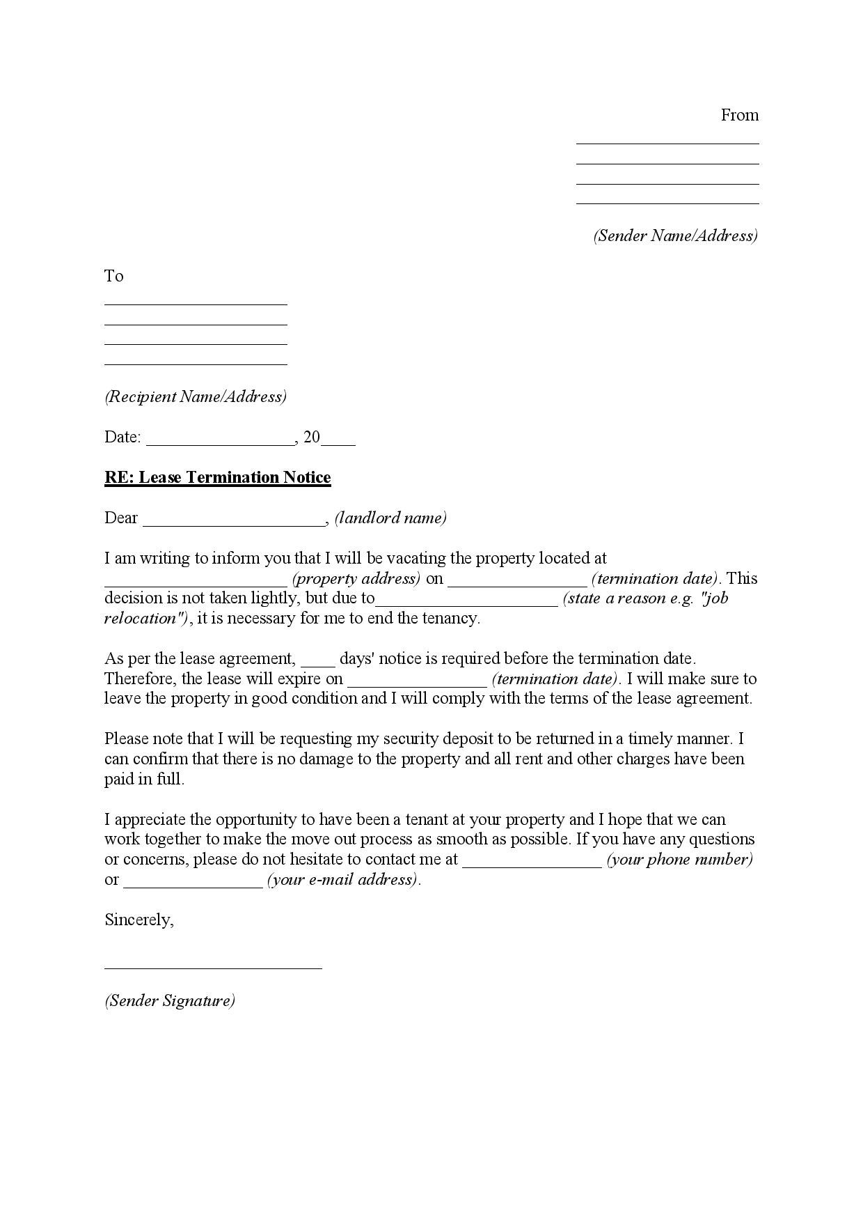 Free Lease Termination Letter Notice To Vacate PDF LawDistrict