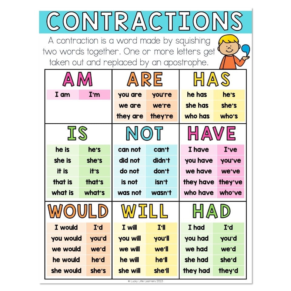 Grammar And Phonics Contractions Anchor Chart Lucky Little Learners