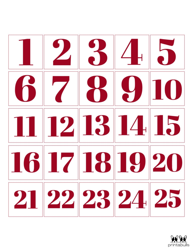 Make this holiday season extra special with our free printable numbers for Advent 1-25. From cozy nights by the fire to festive gatherings with loved ones, an Advent calendar is a timeless tradition that brings joy and anticipation to the holiday season. Download your numbers now and start counting down to Christmas!