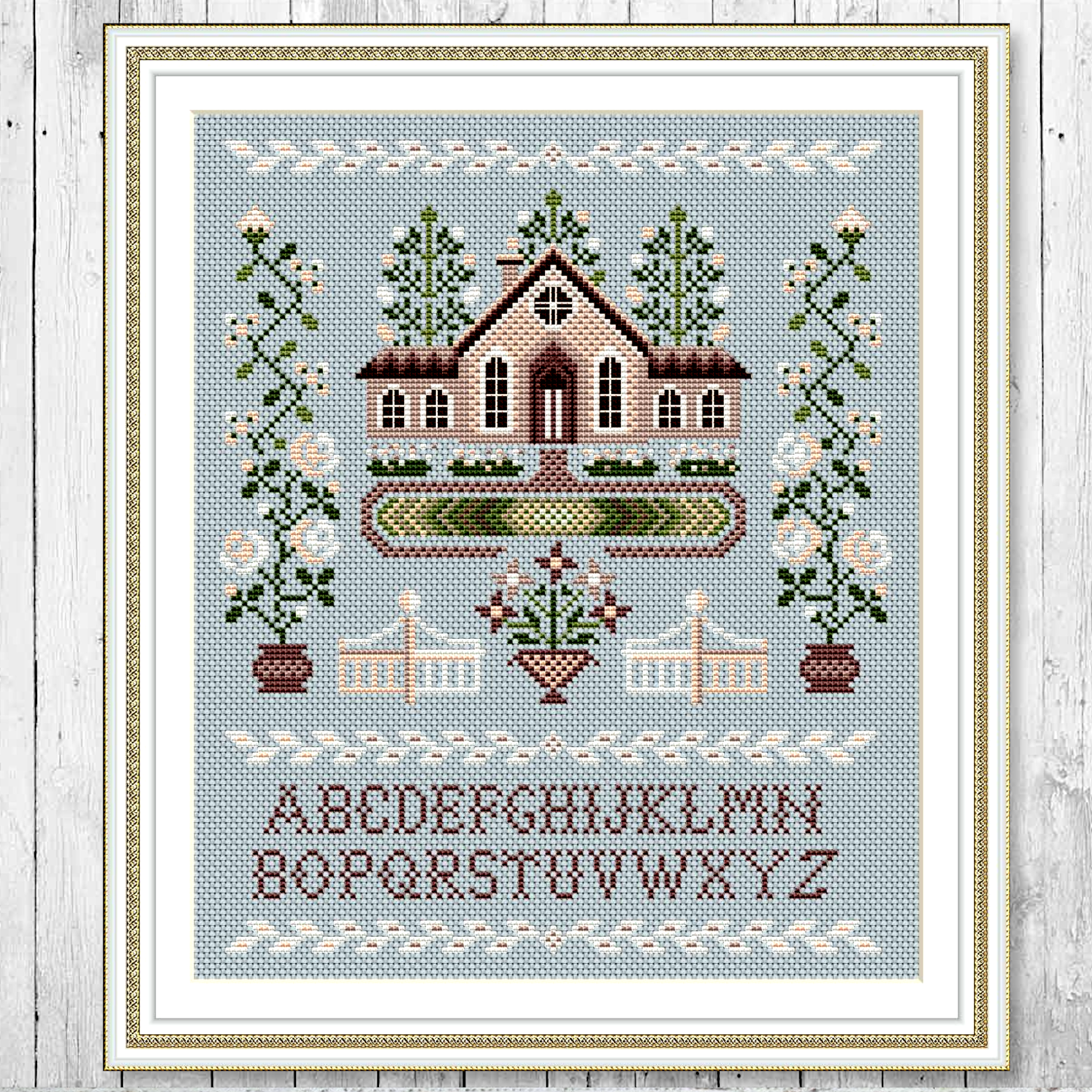Cross Stitch Pattern Sampler Primitive Home Sweet Home Embroidery Vintage PDF Instant Download 159 Crealandia
