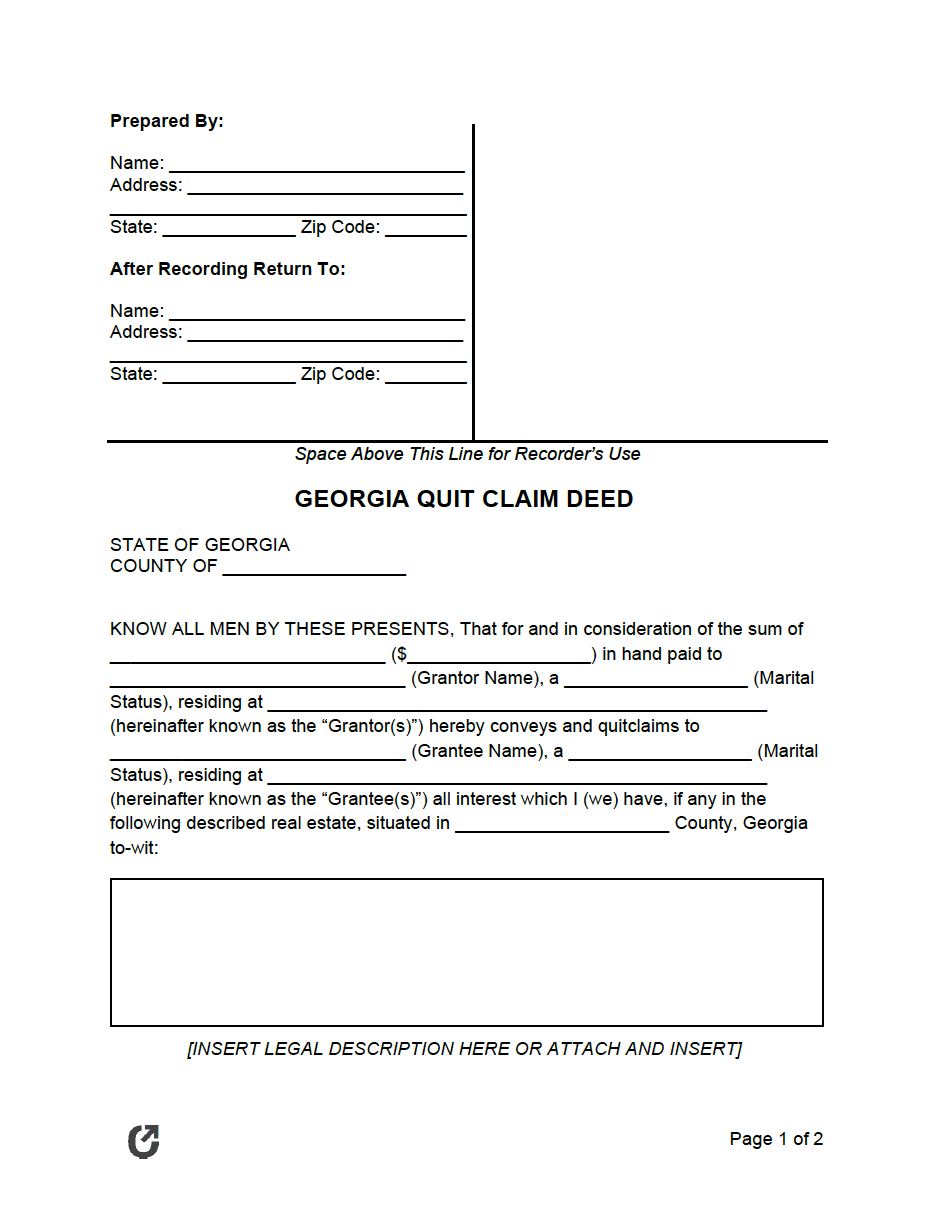 Georgia Quit Claim Deed Form Free Sample CocoSign