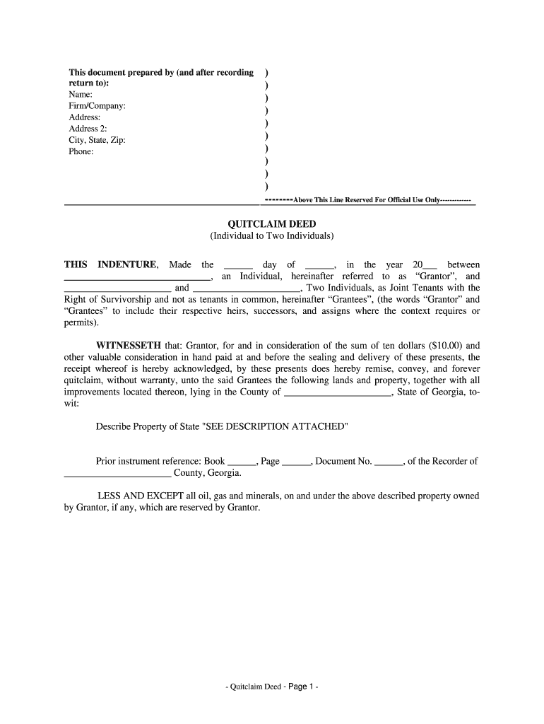 Free Georgia Quit Claim Deed Form PDF WORD RTF