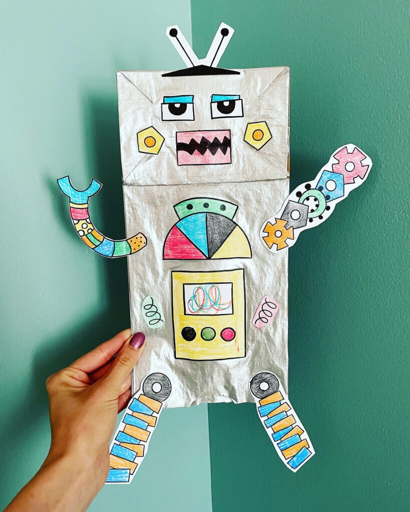 Once you’ve found the perfect robot cut outs, all you need to do is print them out on cardstock or paper, depending on the project you have in mind. Then, let your child’s creativity run wild as they color, cut, and paste their robot creations.