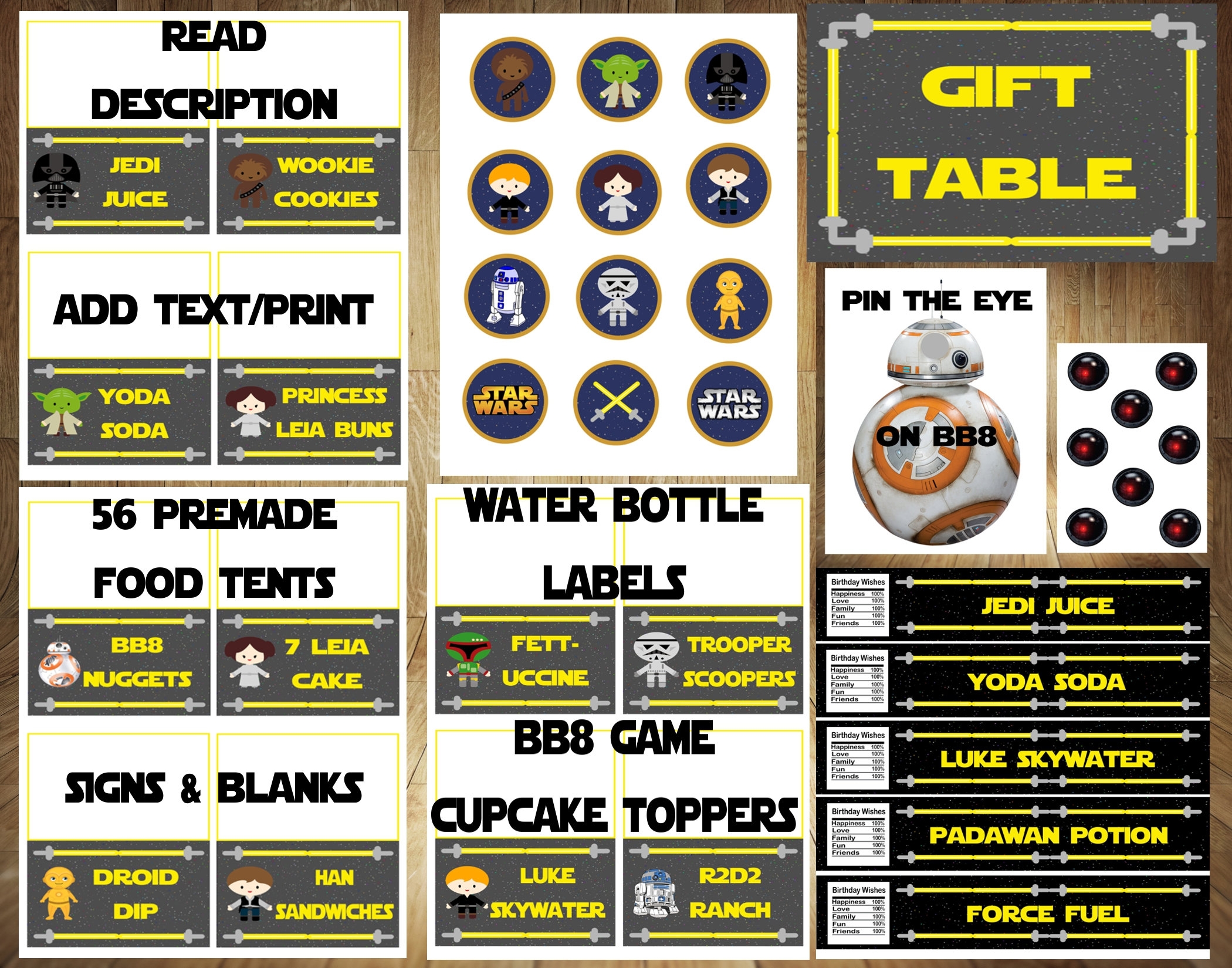 ADD TEXT Star Wars Food Labels Star Wars Birthday Star Wars Bundle Star Wars Game Star Wars Signs Star Wars Birthday Bundle Yellow Etsy