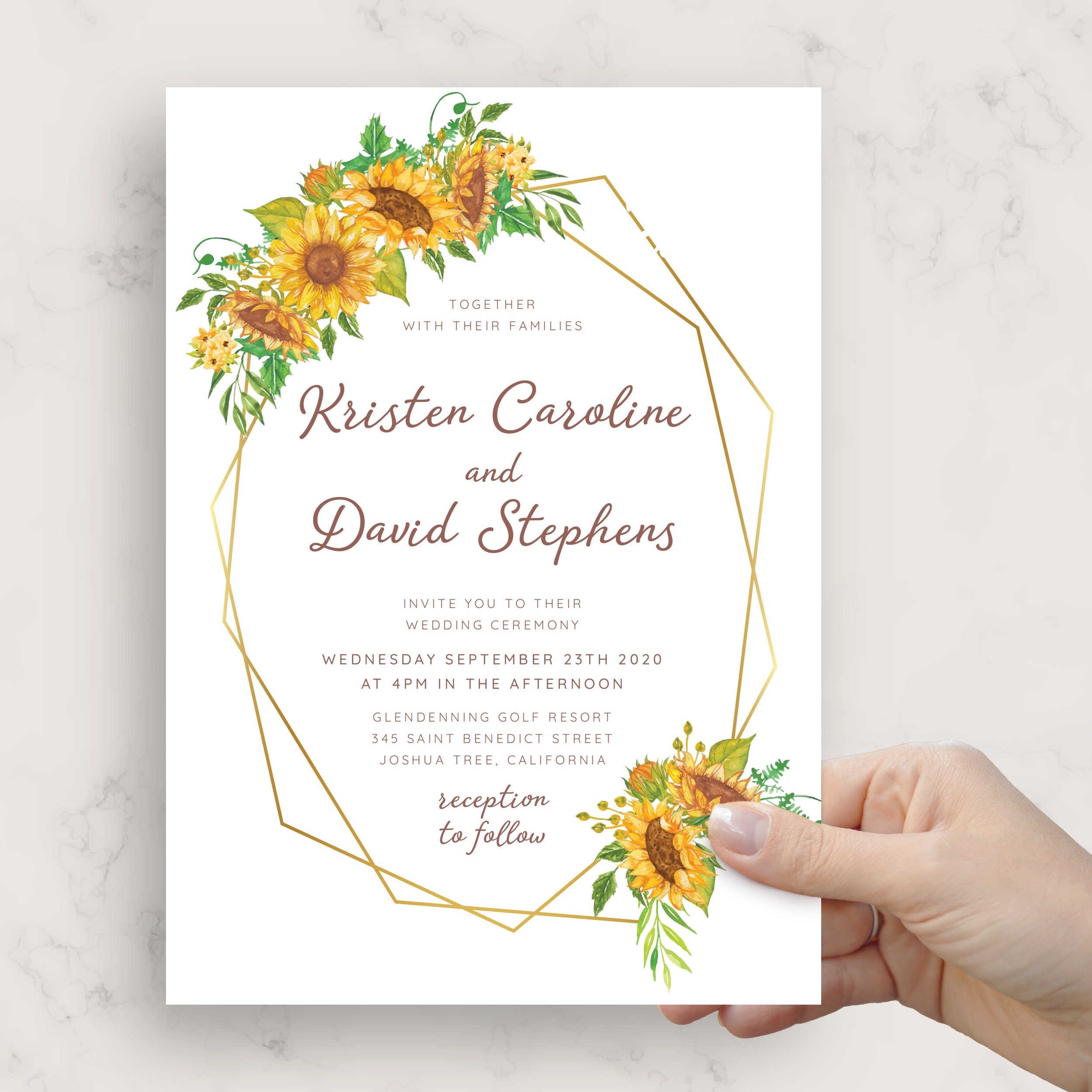 Wedding Invite Geometric Sunflower Wedding Invitation Printable Wedding Invites Template Editable Wedding Invitation PDF JPG PNG Etsy