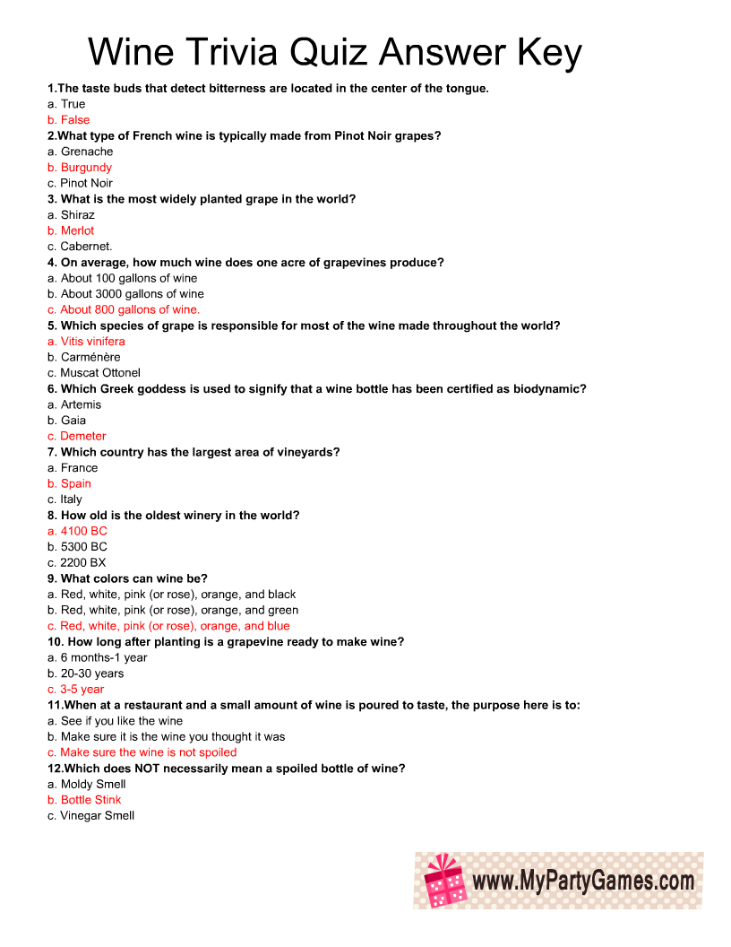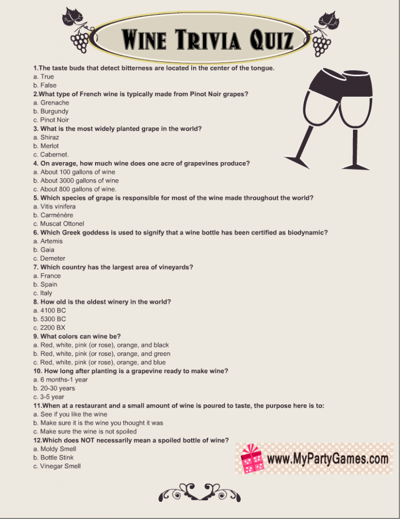 Free Printable Wine Trivia Quiz With Answer Key