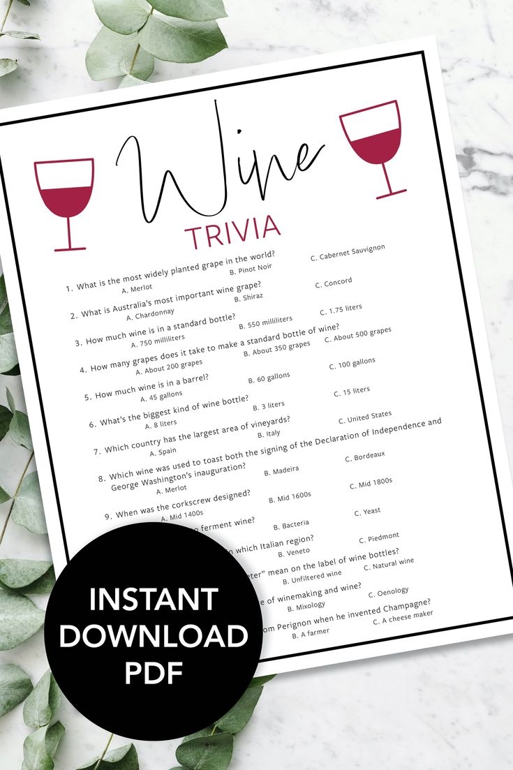 Wine Trivia Game Wine Knowledge Quiz Game Printable Wine Party Trivia Game Wine Themed Trivia Quiz Wine Party Instant Download PDF Etsy