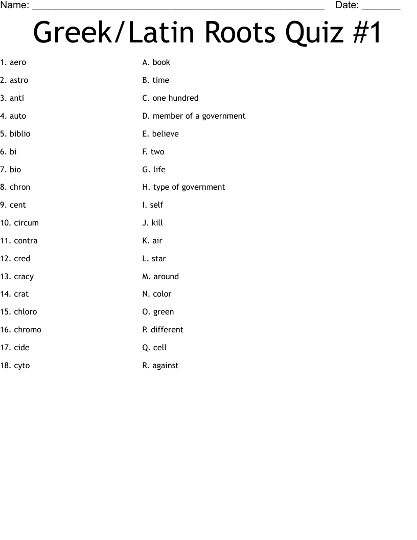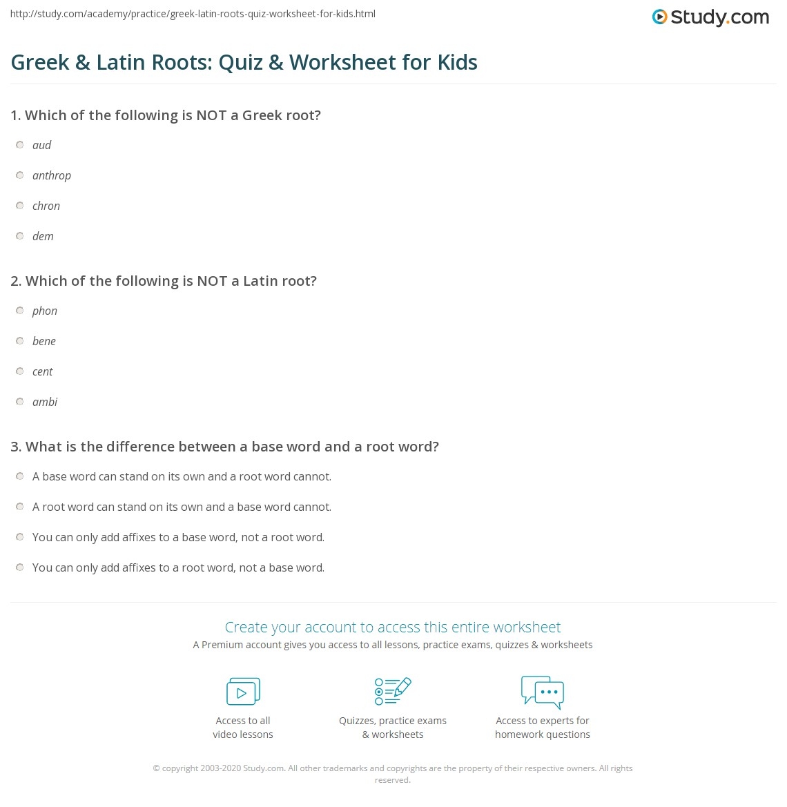 Greek Latin Roots Quiz 1 Worksheet WordMint