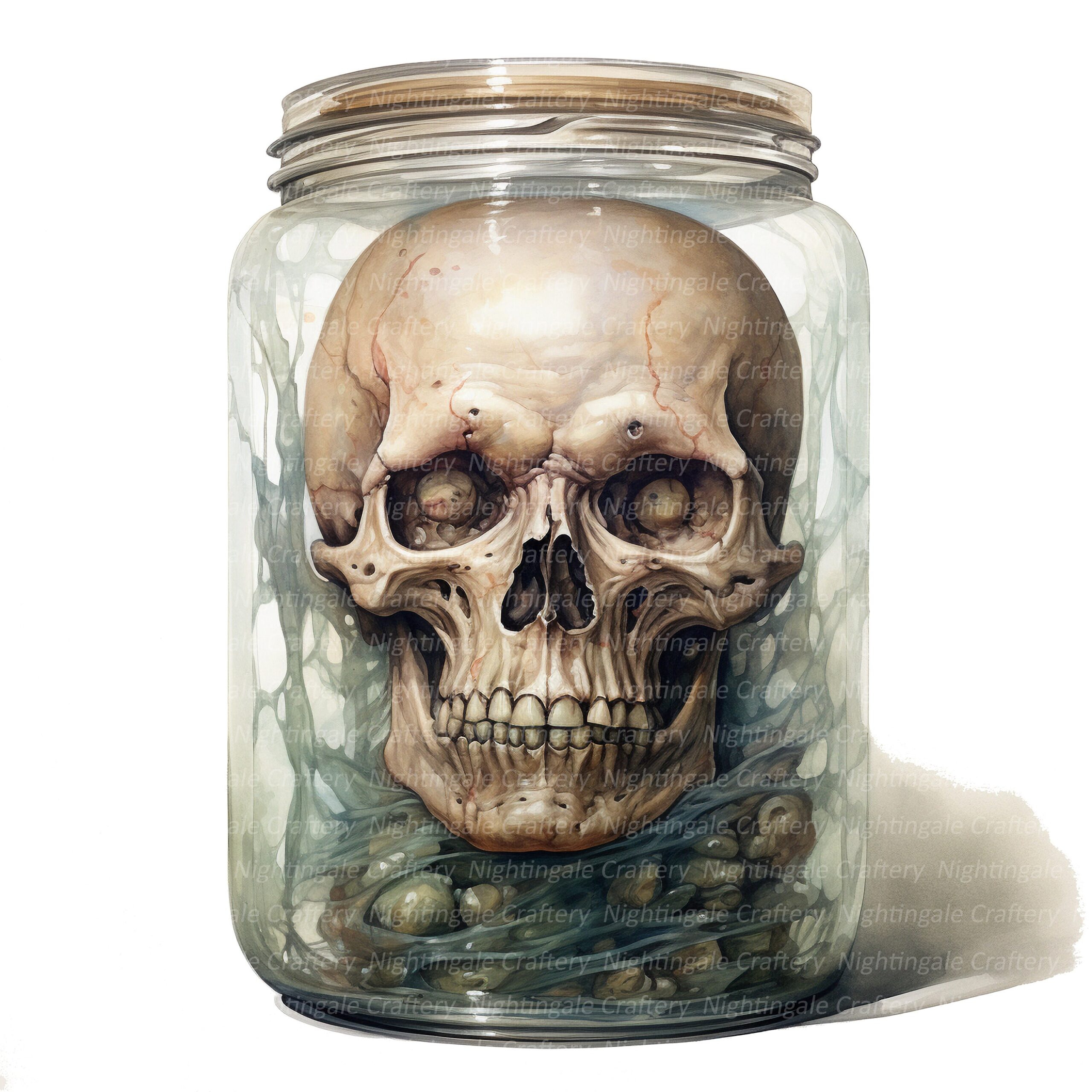 10 Scary Face In Jar Clipart Halloween Printable Watercolor Clipart High Quality Jpgs Digital Download Paper Craft Junk Journals Etsy