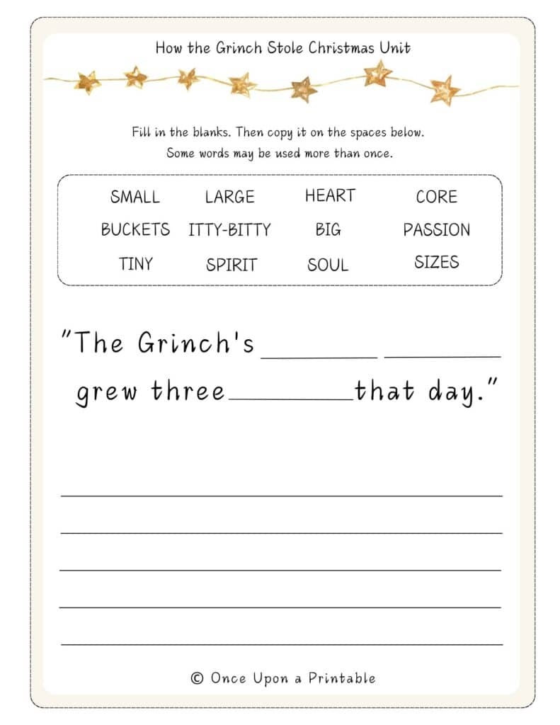 How The Grinch Stole Christmas Worksheets Free Printables Once Upon A Printable