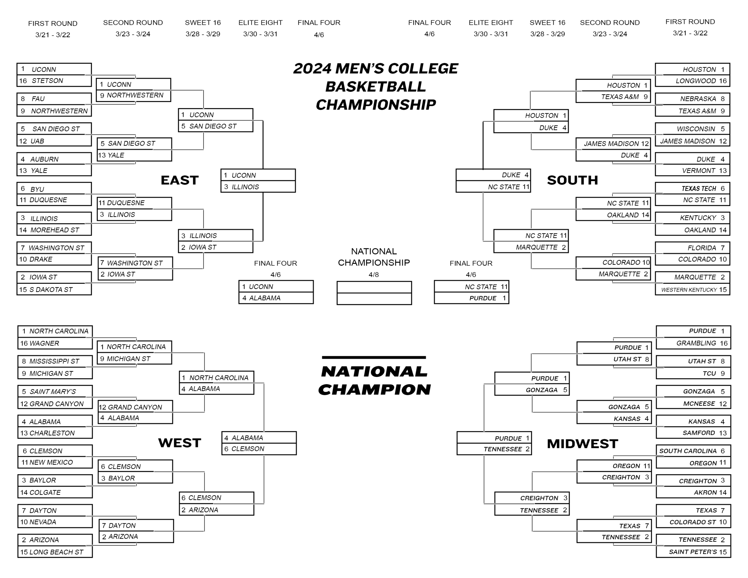 March Madness 2024 Printable Final Four Bracket Schedule And Betting Odds FanDuel Research