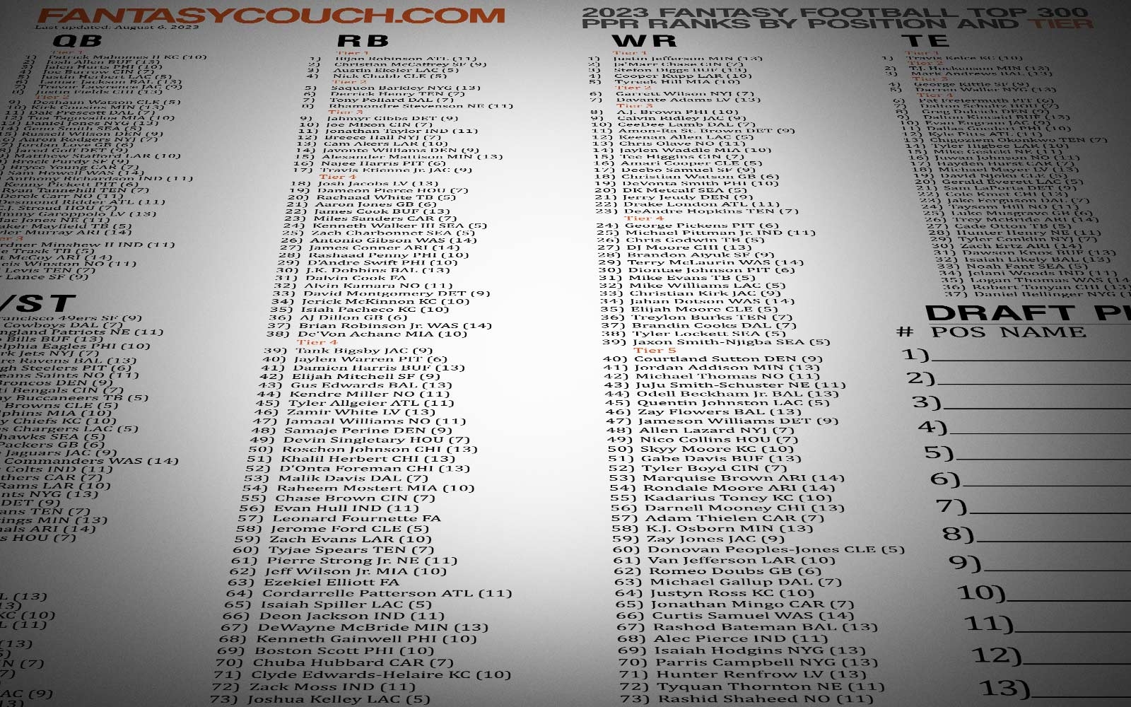 2024 Fantasy Football Eight Printable Cheat Sheets For Your Draft Wolf Sports
