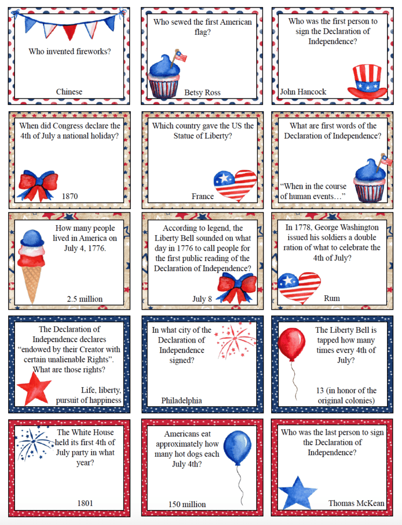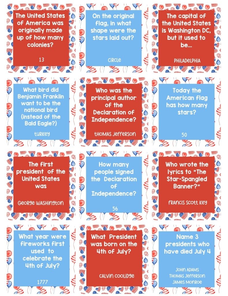 4th Of July Trivia Cards For Kids Free Printable Trivia Questions