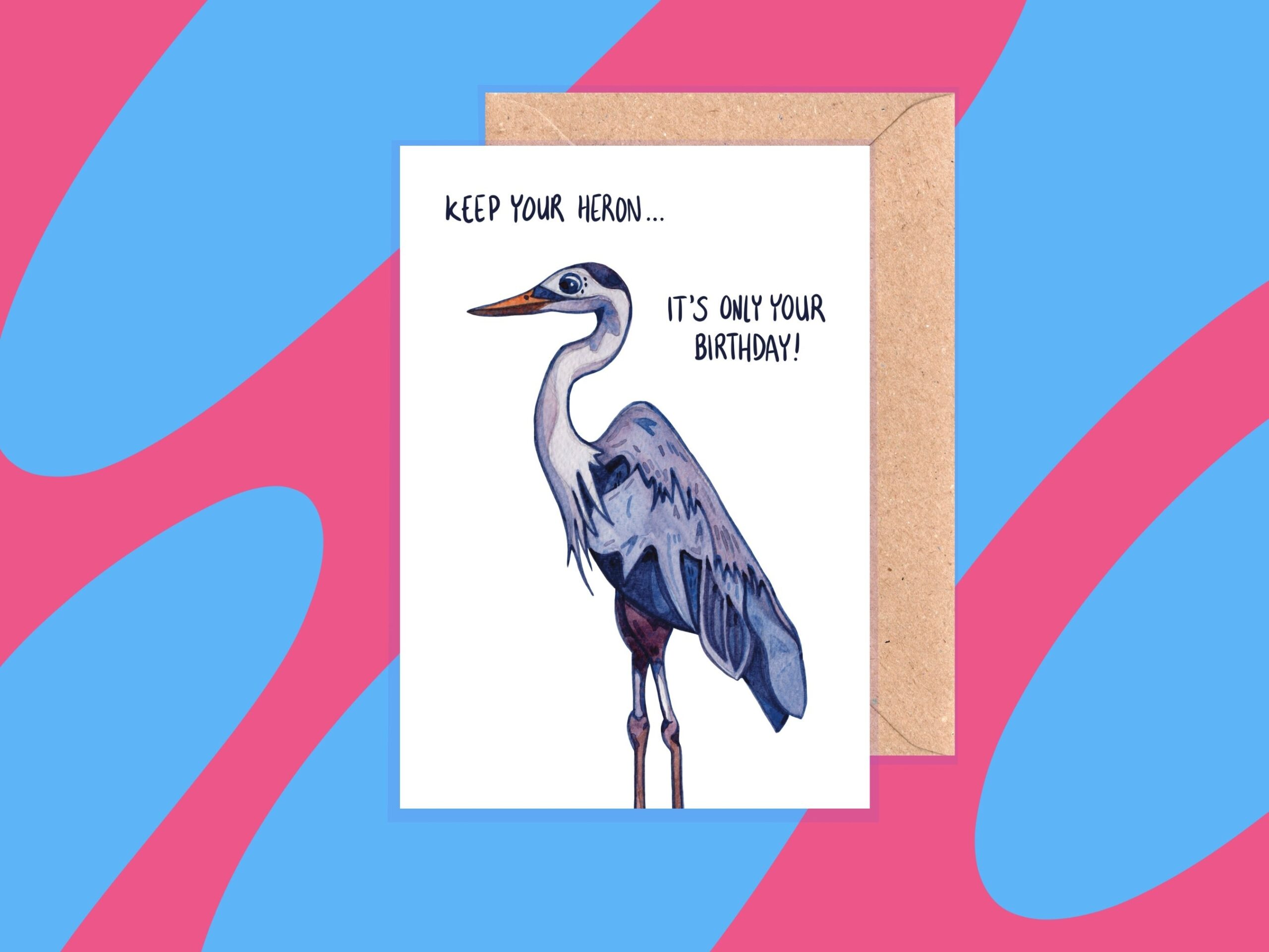 A6 Illustrated keep Your Heron Pun Birthday Card Etsy