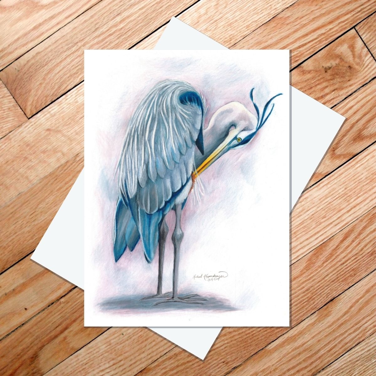 Great Blue Heron Preening 5 7 Art Card Rachael Koppendrayer