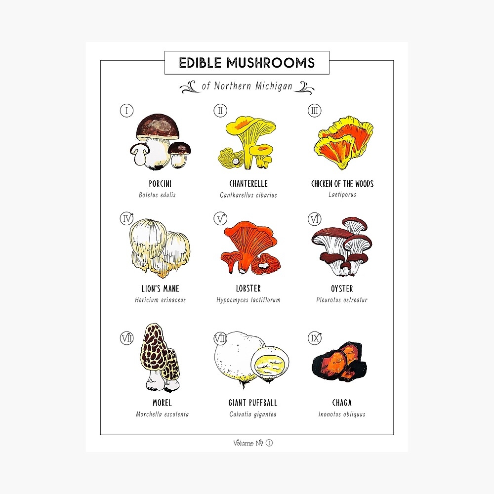 Edible Mushrooms Of Northern Michigan Art Print For Sale By Hcmilkie Redbubble