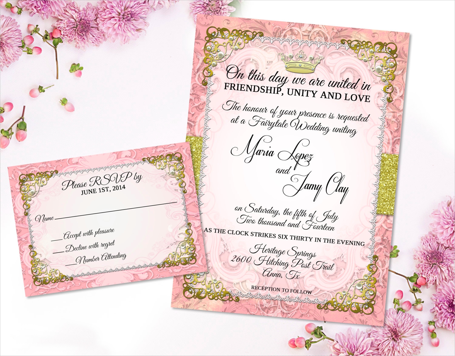Fairytale Wedding Invitation RSVP Card Printable Custom Design Rebecca Designs Co