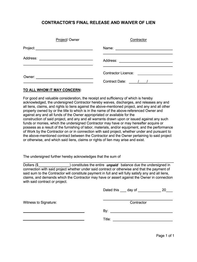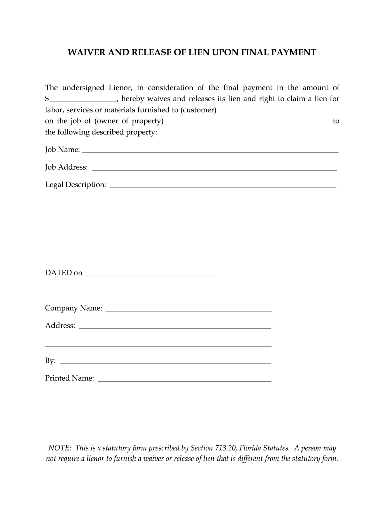 Are you in need of a printable final waiver of lien form? Look no further! We understand the importance of having the right documentation in place for your projects. Whether you’re a contractor, subcontractor, or property owner, having a final waiver of lien is crucial to protect your interests.