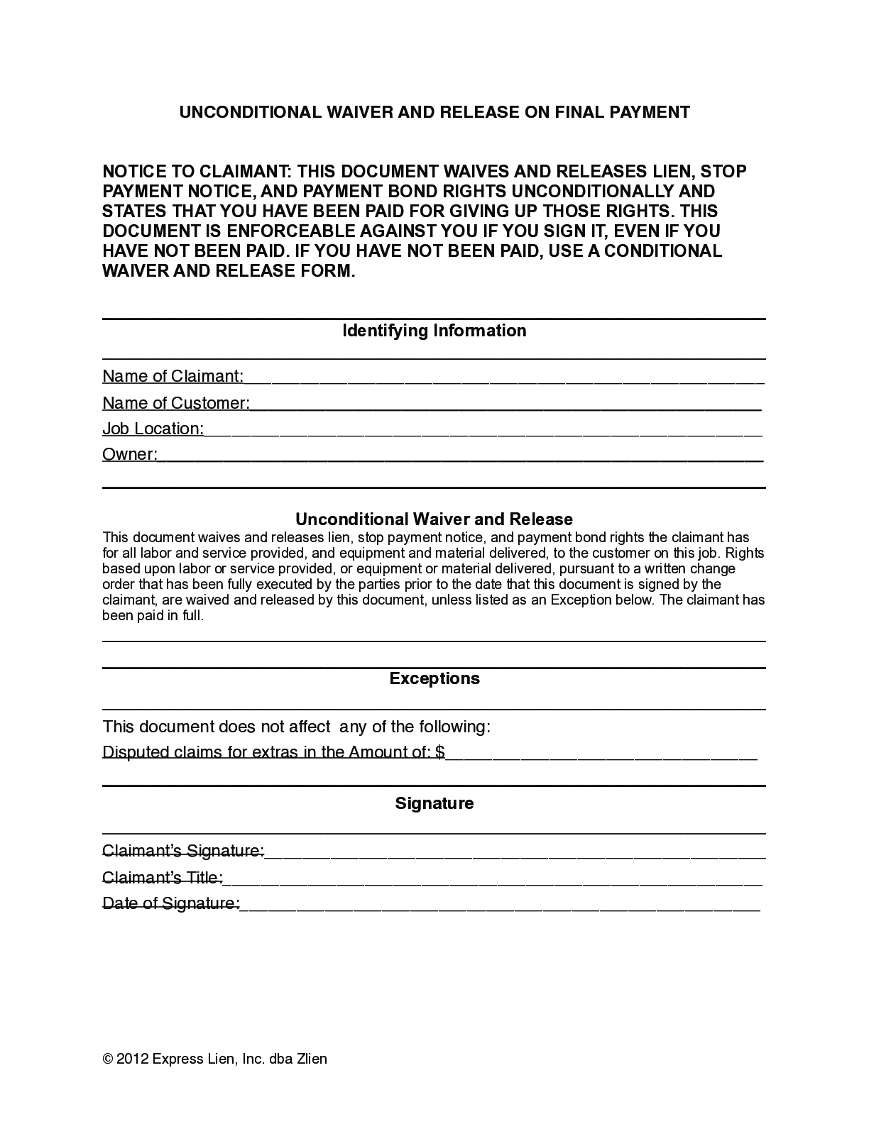 Free Conditional Lien Waiver For Final Payment PDF Word