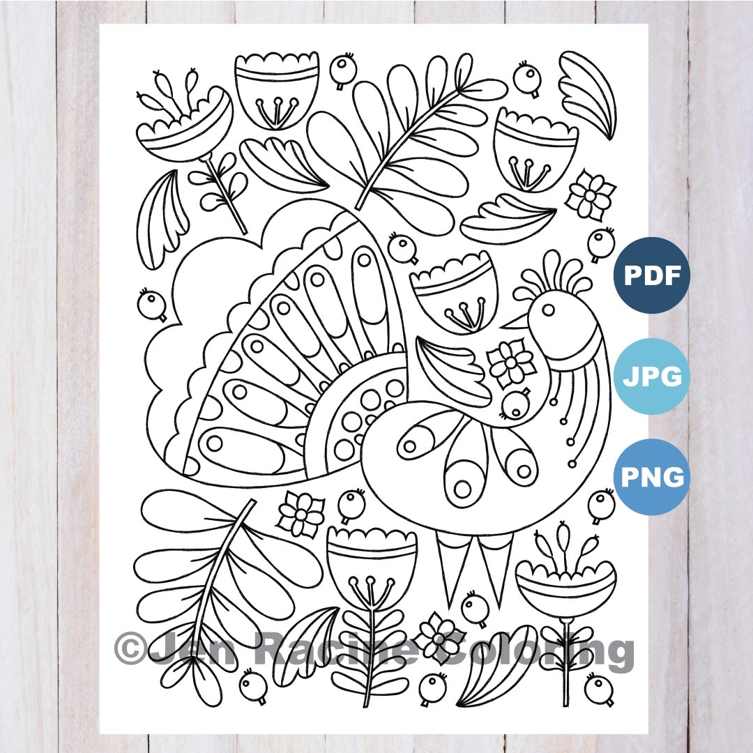 Folk Art Birds Coloring Pages Printable Coloring Book Of Detailed Birds Drawn In A Folk Style Art Is Fun