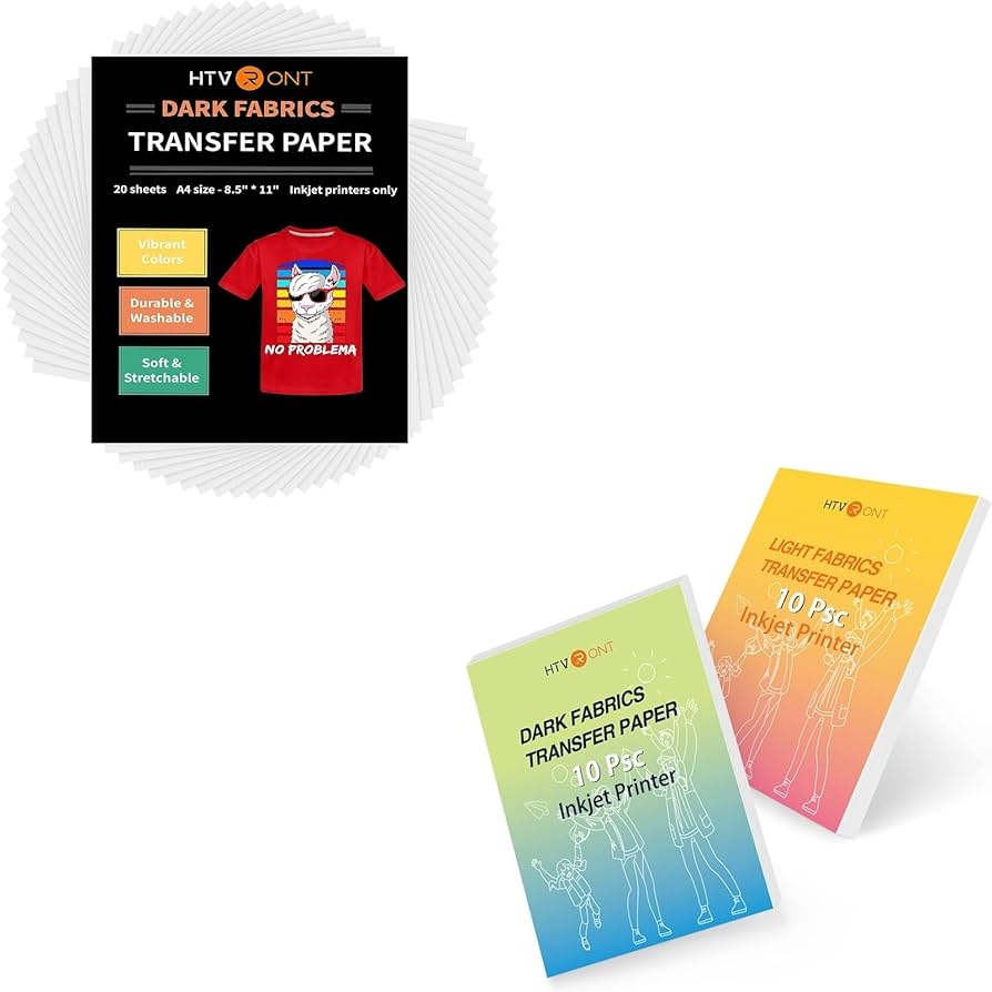 Amazon HTVRONT Heat Transfer Paper For T Shirts Iron On Transfer Paper For Dark Fabric 20 Sheets 20 Pack Mixed Light Dark 8 5 X 11 Printable Heat Transfer Vinyl