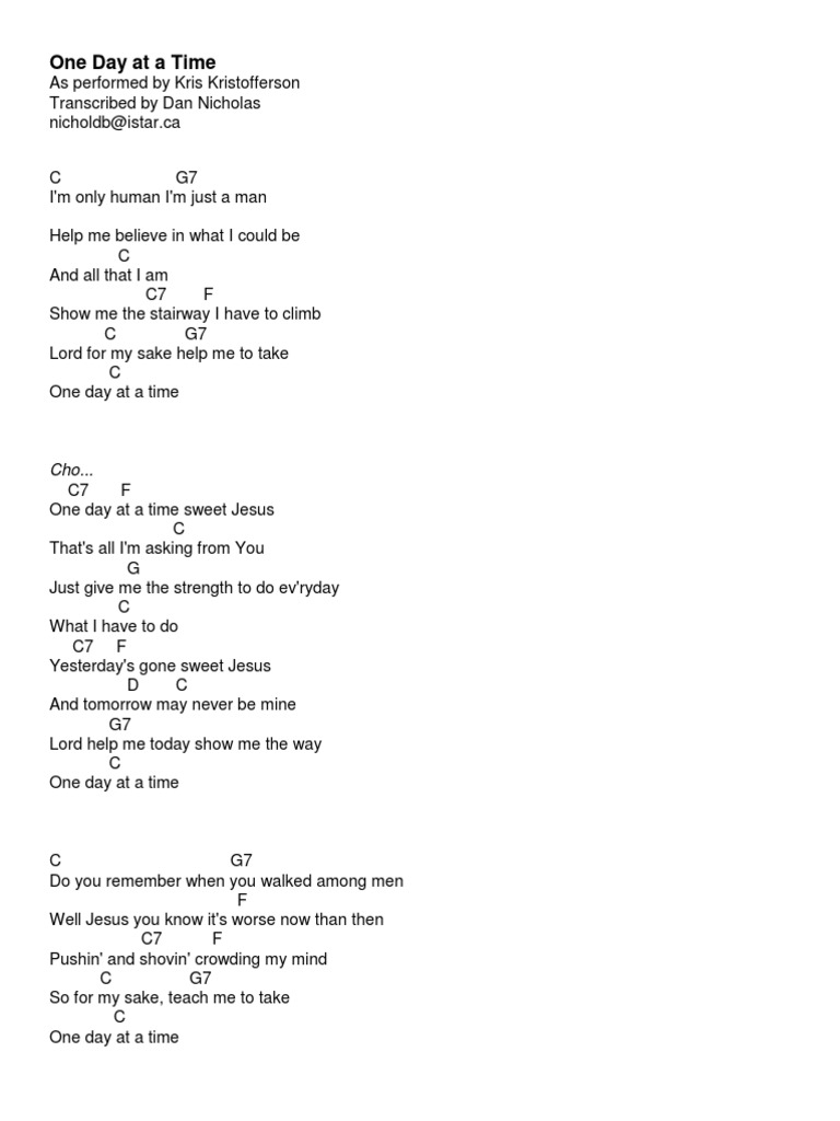 Printable Lyrics For One Day At A Time