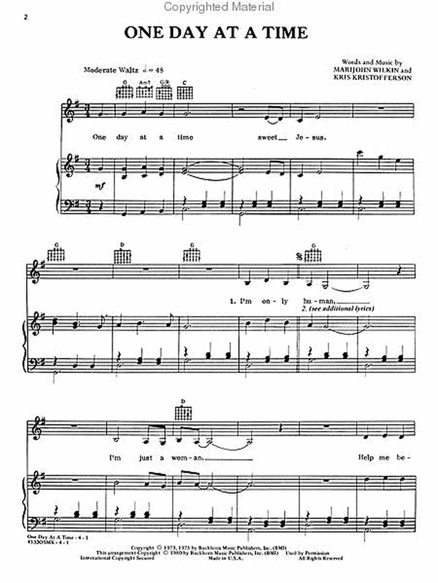 So what are you waiting for? Download our printable lyrics for “One Day At A Time” now and start singing along to this inspiring tune. Let the music lift your spirits, energize your soul, and remind you to take each day as it comes, with hope, gratitude, and a positive attitude.