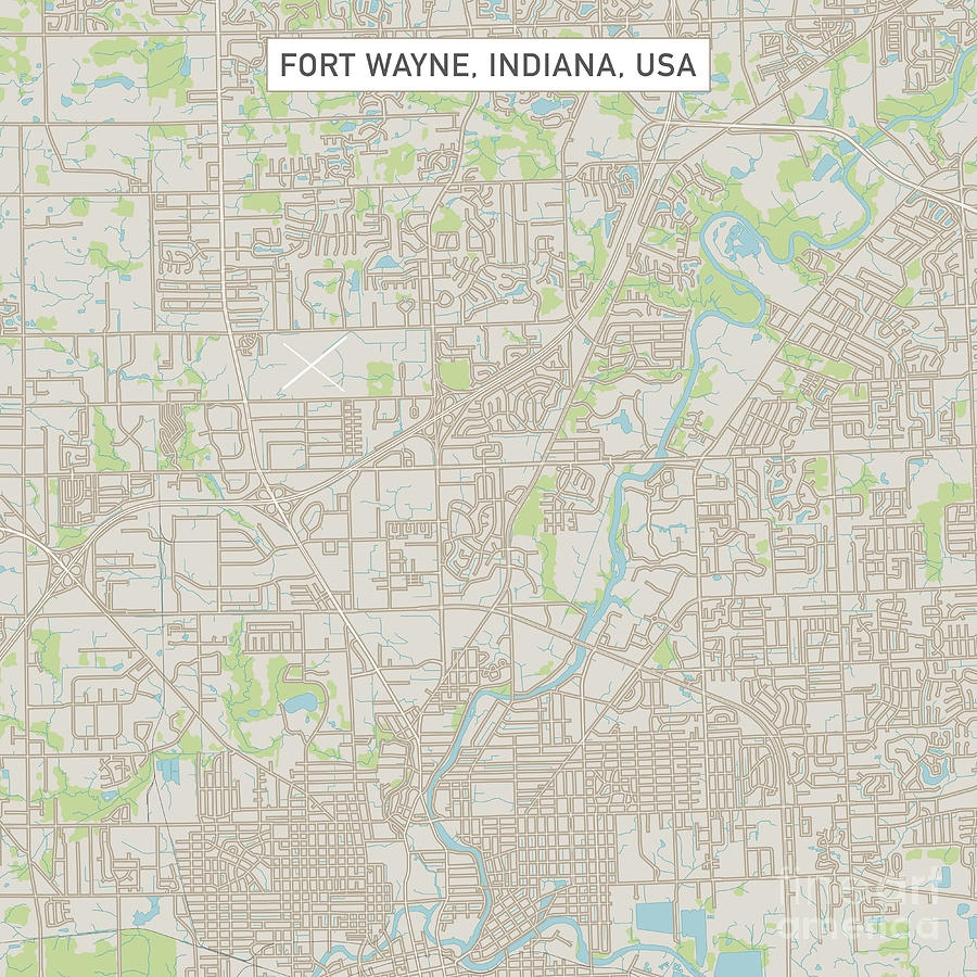 Fort Wayne Indiana US City Street Map By Frank Ramspott