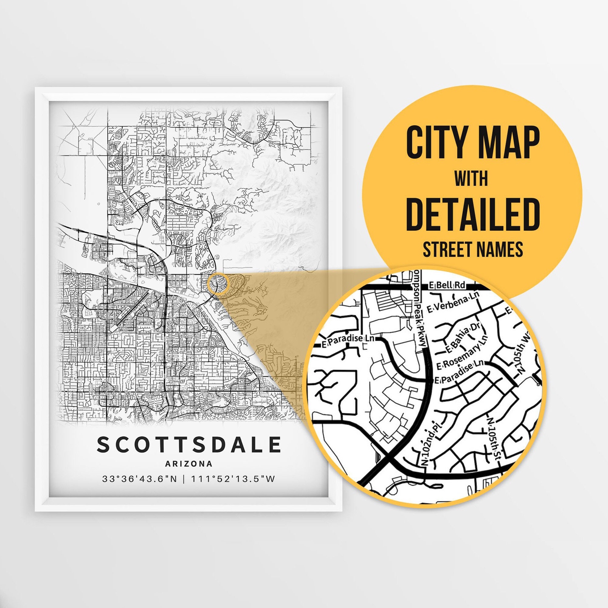 Printable Map Of Scottsdale Arizona USA With Street Names Instant Download City Map Travel Gift City Poster Road Map Print Etsy UK