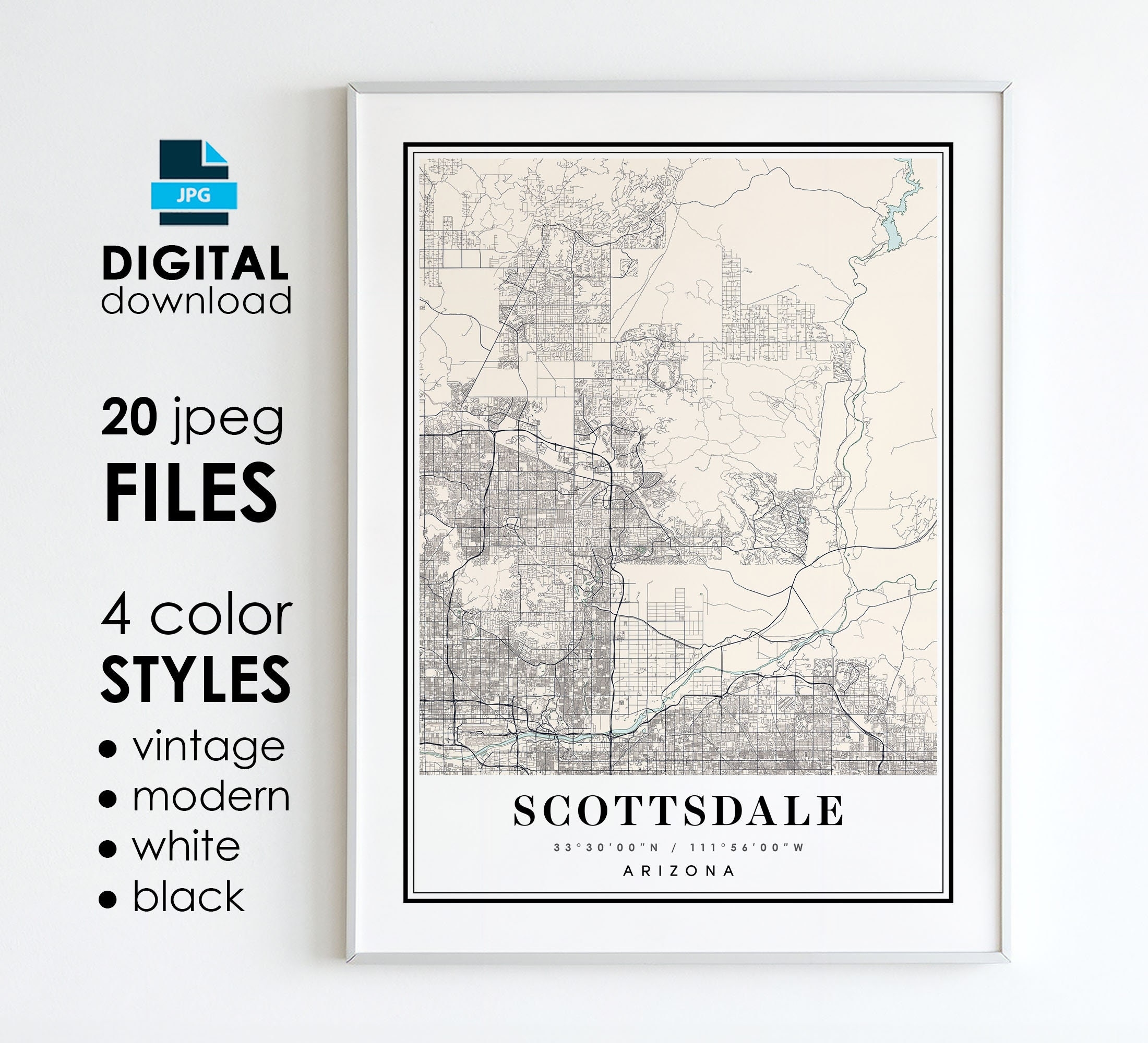 SCOTTSDALE AZ Map Printable Digital Art Scottsdale Arizona City Poster Map Digital Instant Download Etsy